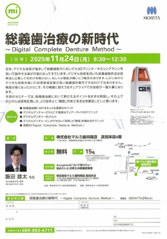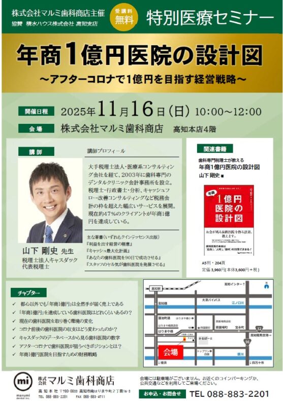 【 会 場 】 | 株式会社マルミ歯科商店 高知本店4F (セミナールーム) 高知市南はりまや町2丁目16-3 TEL088-883-2201 |